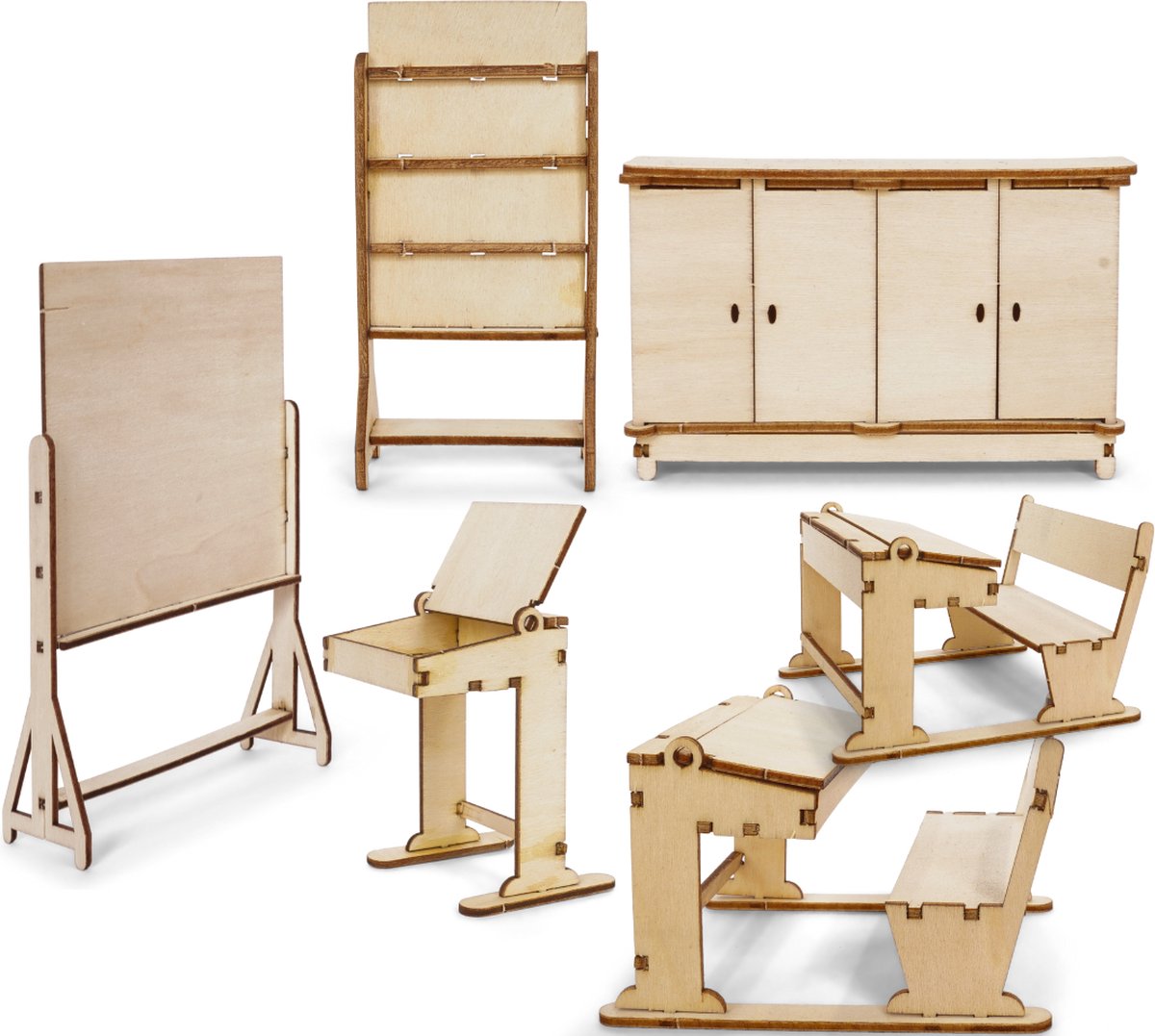 - Meubelkit Klaslokaal: houten meubels in schaal 1:12.