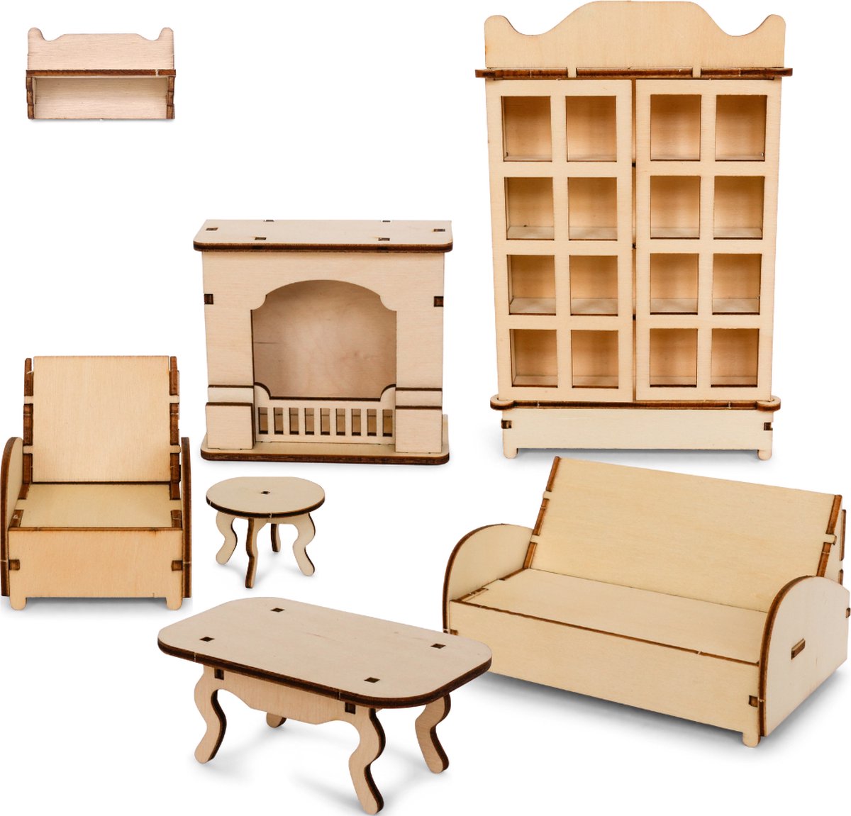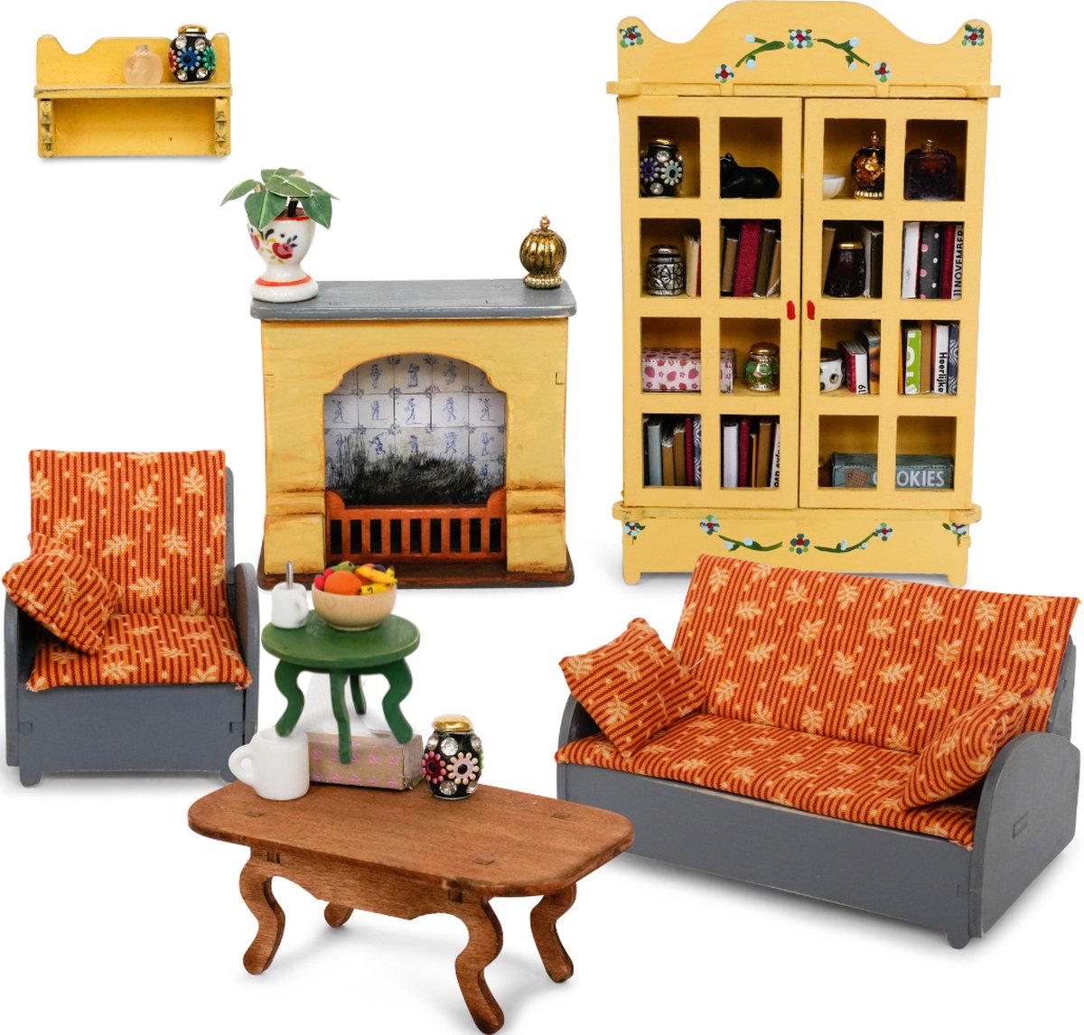 - Meubelkit Woonkamer: houten meubels, schaal 1:12