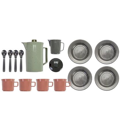 Dantoy koffieset is hele mooie toevoeging op het fantasierijke spel van kinderen. Poppen eten geven of met vriendjes en vriendinnetjes net doen alsof het etenstijd is. De 17-delige set is gemaakt van overtollige restproducten van Dantoy.