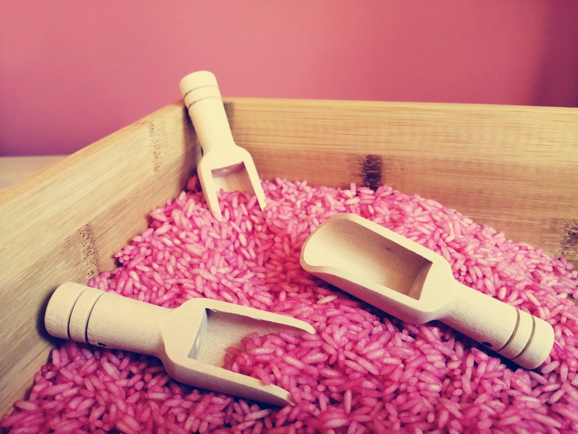 Kinderen vinden spelen met speelrijst en magisch zand geweldig. Spelen met dit materiaal bevorderd de fantasie en is rustgevend, het helpt daardoor ook prikkels te verwerken en te ontspannen. Met dit houten mini schepje kunnen kinderen heerlijk spelen met bijv; speelrijst of magisch zand.