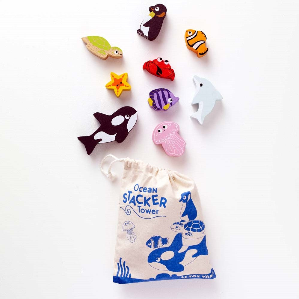 Ontdek de houten stapelaar van Le Toy Van met 9 houten zeedieren voor fantasierijk spelen! Voeg een uitdagend element toe door ze te stapelen: test je evenwicht en behendigheid! Deze stapelaar stimuleert de verbeelding en traint oog-hand-coördinatie, fijne motoriek en evenwichtsgevoel spelenderwijs.