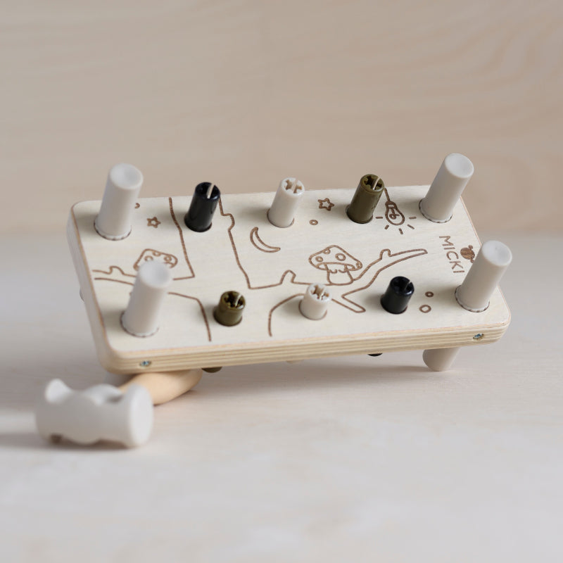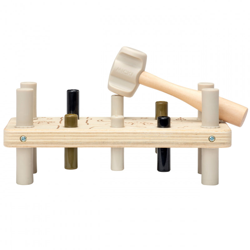 Micki's klassieke hamerbank met net dat beetje extra! De echte Premium hamerbank heeft gegraveerde details aan beide zijden van de bank. De speelgoedpoten en de hamerkop zijn gemaakt van zacht plastic. Laat het hameren beginnen!
