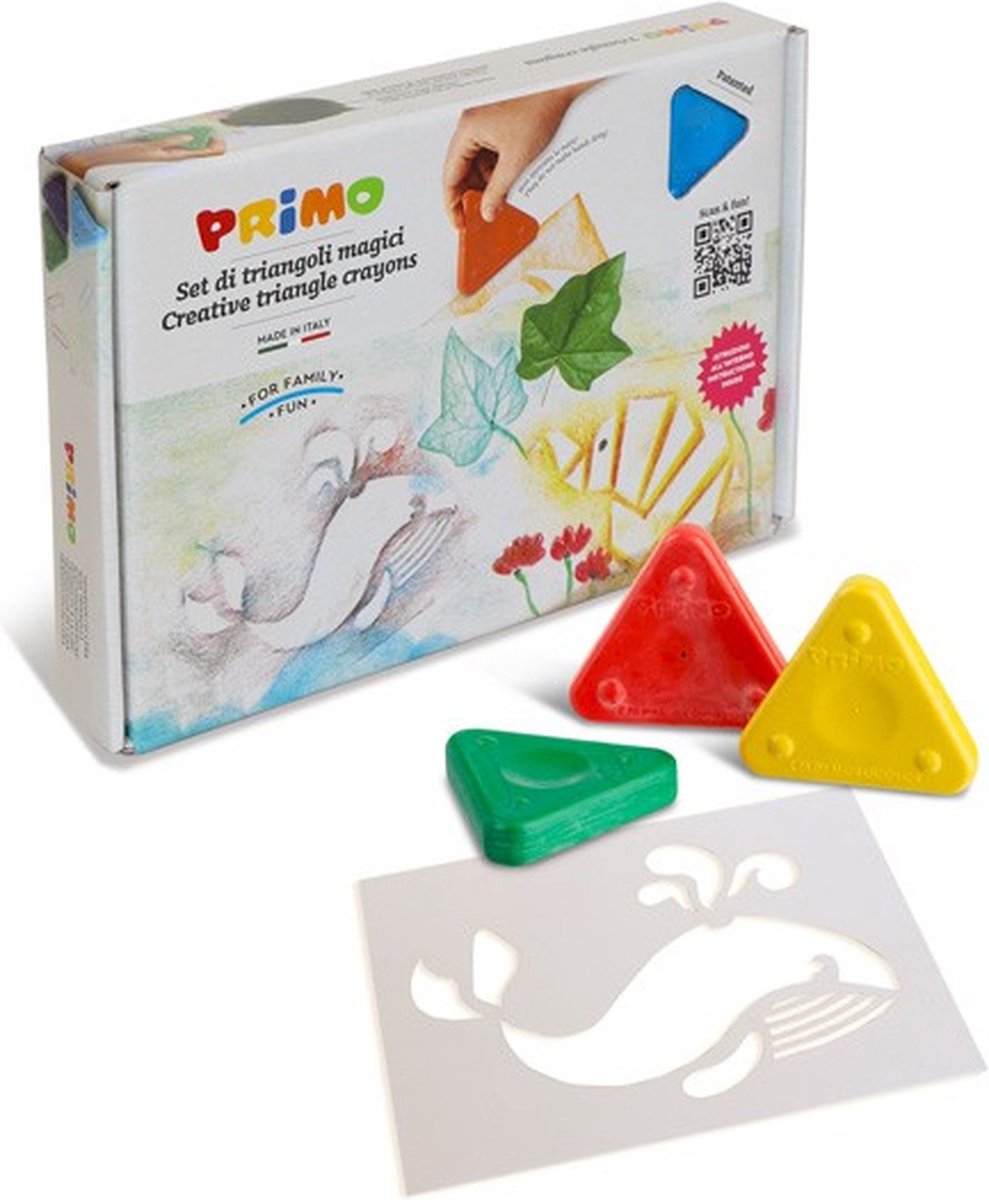 Primo 8 Driehoek waskrijt met sjablonen in doos