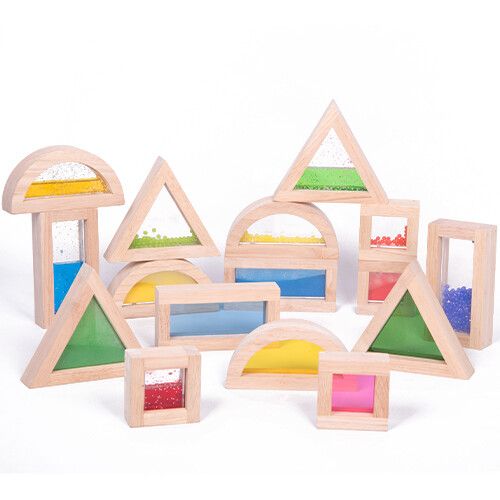 Tickit® Sensorische Blokken zijn kleurrijke rubberhouten blokken met diverse sensorische centra, zoals kralen, transparant acryl, gekleurd zand en glinsterend water. Perfect voor jonge kinderen, deze blokken stimuleren nieuwsgierigheid en ontdekking door geluiden, bewegingen en kleuren te verkennen. Ze helpen bij het leren van vormen en kleuren, terwijl ze observatievaardigheden bevorderen. De set bevat 16 blokken in 4 vormen: vierkant, rechthoek, driehoek en halve cirkel. Geschikt voor kinderen vanaf 12 maanden, en perfect te combineren met onze Grote Spiegelblokken voor extra leerplezier!
